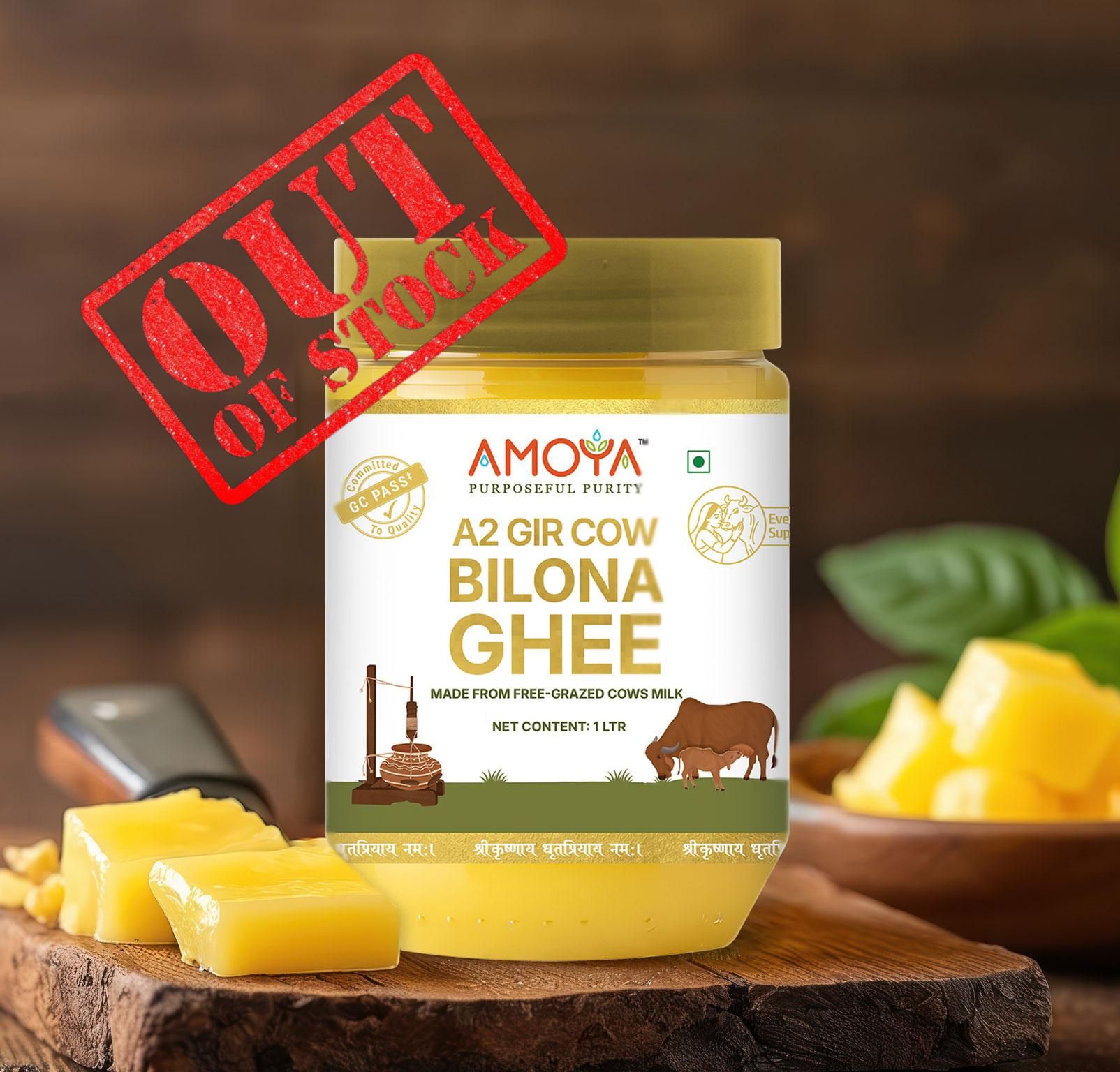 Amoya A2 Gir Cow Ghee (Bilona) is masterfully crafted using a traditional Bilona method of churning curd which enhances the flavour, nutritional value, and purity of the ghee.